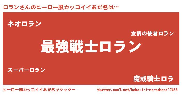 | 男性向けラノベタイトル風あだ名 | 『ロラン~年齢イコール彼女いない歴の魔法使い~』 |
