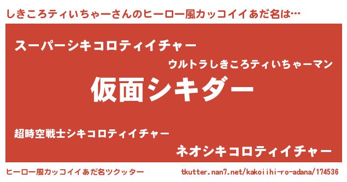 | 意味不明あだ名 | 『住所不定無職しきころティいちゃー(56歳)』 |