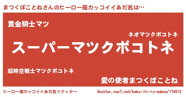 | 胡散臭い通販商品みたいなあだ名 | 『億万長者になれる水晶球…その名も「まつくぼことね」』 |