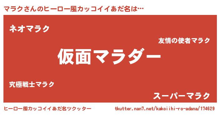 | 男性向けラノベタイトル風あだ名 | 『この素晴らしい世界にマラクを!』 |