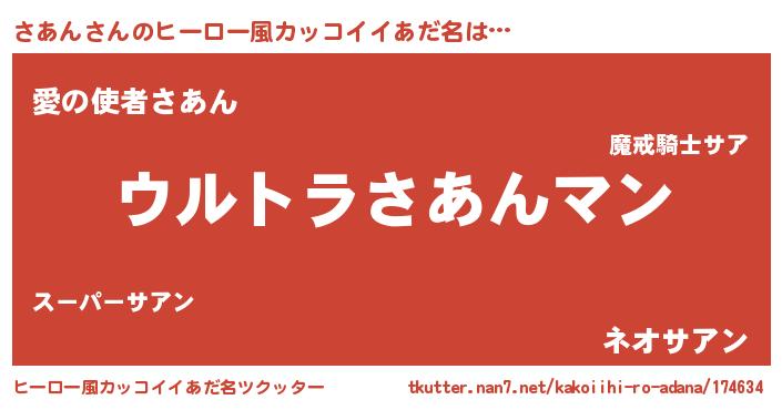 | 男性向けラノベタイトル風あだ名 | 『やはりさあんの青春ラブコメはまちがっている 』 |