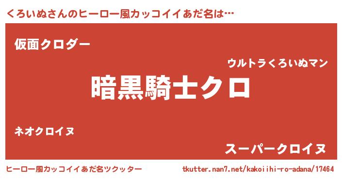 | 男性向けラノベタイトル風あだ名 | 『ダンジョンにくろいぬを求めるのは間違っているだろうか』 |