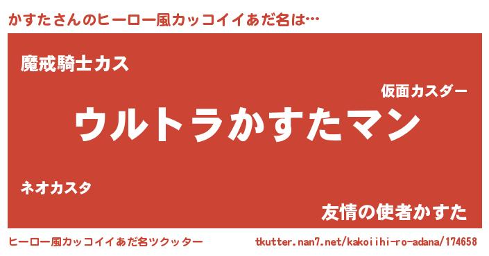 | 男性向けラノベタイトル風あだ名 | 『かすた~年齢イコール彼女いない歴の魔法使い~』 |