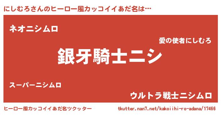 | ポケモン風あだ名 | 『ニシキング』『ヒニシムロ』 |