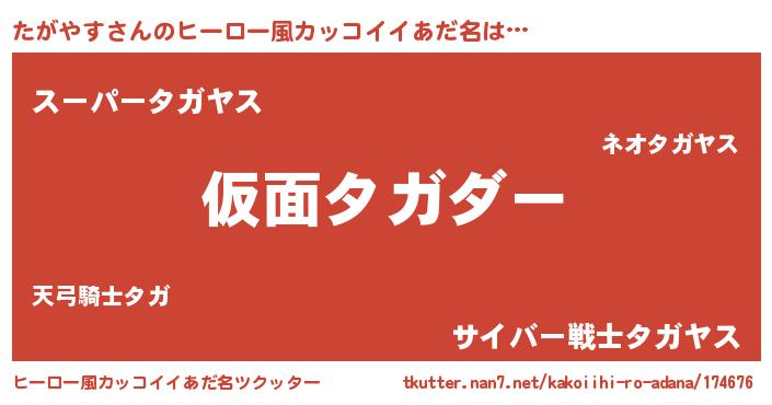 | 意味不明あだ名 | 『住所不定無職たがやす(40歳)』 |