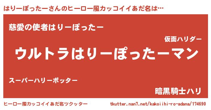 | ファンタジー風あだ名 | 『エターナルハリーポッターー』 |