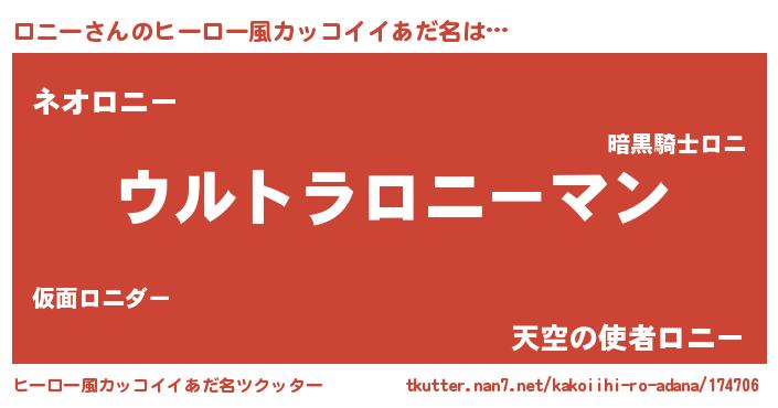 | 男性向けラノベタイトル風あだ名 | 『やはりロニーの青春ラブコメはまちがっている 』 |