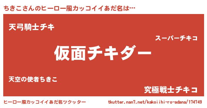 | 男性向けラノベタイトル風あだ名 | 『魔弾の王とちきこ』『ちきこの憂鬱』 |