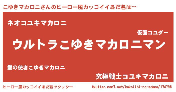 | ファンタジー風あだ名 | 『エターナルコユキマカロニー』 |