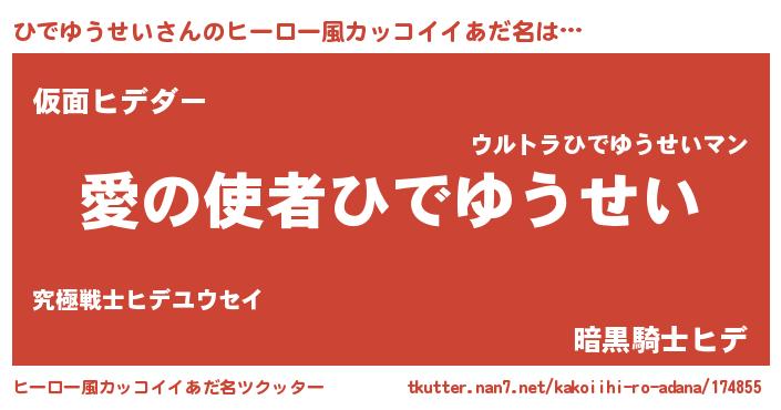 | 男性向けラノベタイトル風あだ名 | 『おまえをオタクにしてやるから、俺をひでゆうせいにしてくれ! 』 |