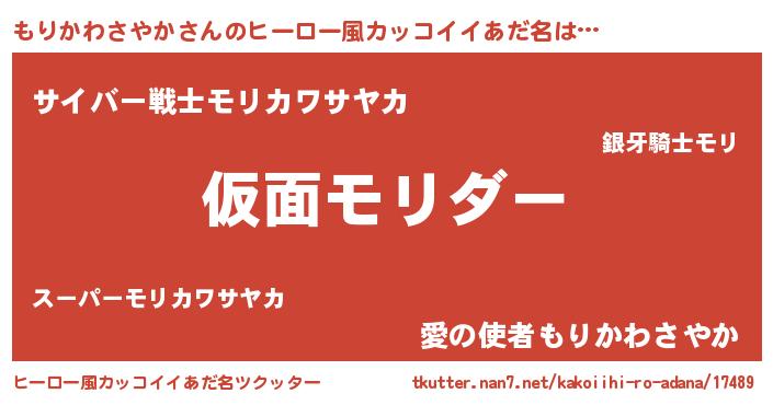 | 男性向けラノベタイトル風あだ名 | 『もりかわさやか~年齢イコール彼女いない歴の魔法使い~』 |