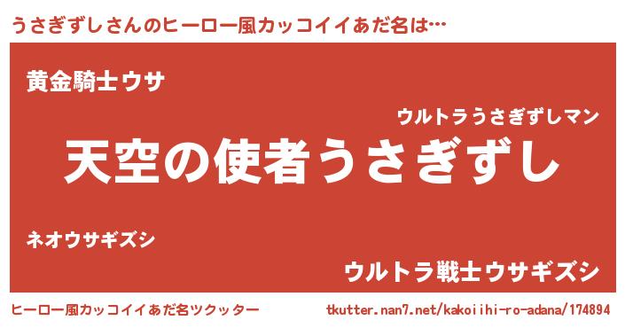 | ポケモン風あだ名 | 『ウックウザ』『ヒウサギズシ』 |