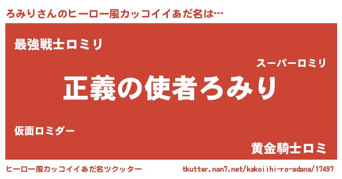 | 男性向けラノベタイトル風あだ名 | 『おまえをオタクにしてやるから、俺をろみりにしてくれ! 』 |