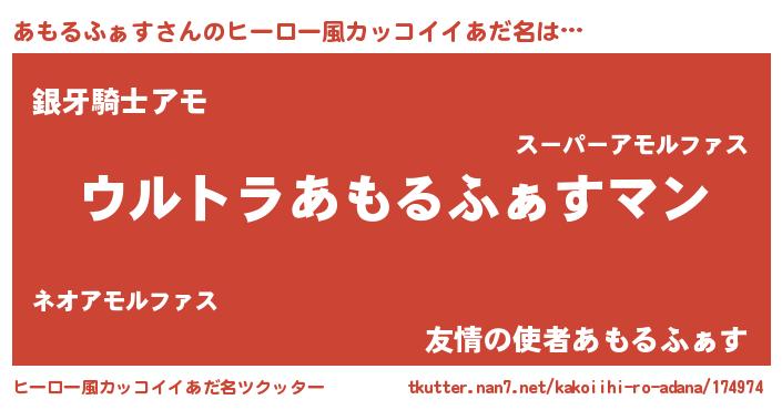 | 男性向けラノベタイトル風あだ名 | 『あもるふぁすに滅ぼされるだけの簡単なお仕事です』 |