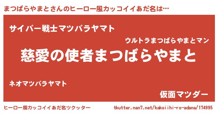 | 男性向けラノベタイトル風あだ名 | 『ノーゲーム・ノーマツバラヤマト』 |