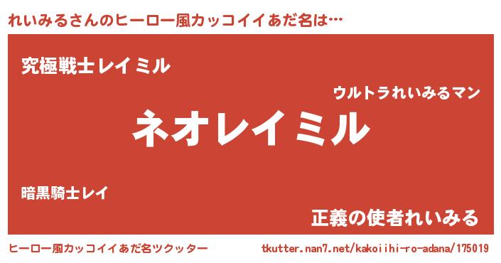 | 伝説のあだ名 | 『古文書に記された暗殺者れいみる』 |