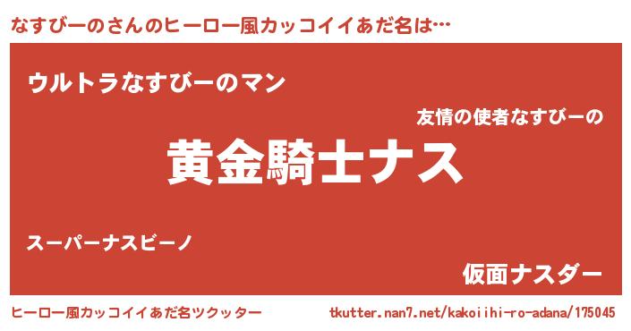 | 男性向けラノベタイトル風あだ名 | 『ダンジョンになすびーのを求めるのは間違っているだろうか』 |