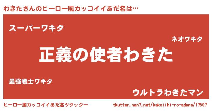 | 男性向けラノベタイトル風あだ名 | 『ワキタスレイヤー』『わきたの憂鬱』 |