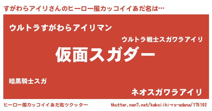 | 男性向けラノベタイトル風あだ名 | 『魔弾の王とすがわらアイリ』 |