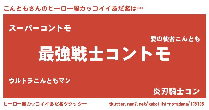 | 男性向けラノベタイトル風あだ名 | 『Re:こんともから始める異世界生活』 |