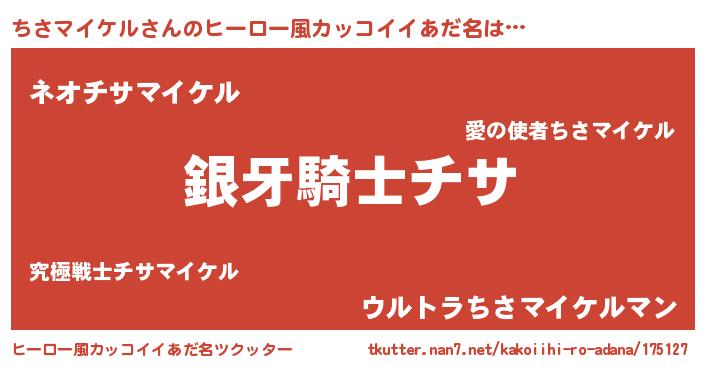 | 男性向けラノベタイトル風あだ名 | 『転生したらちさマイケルだった件』 |
