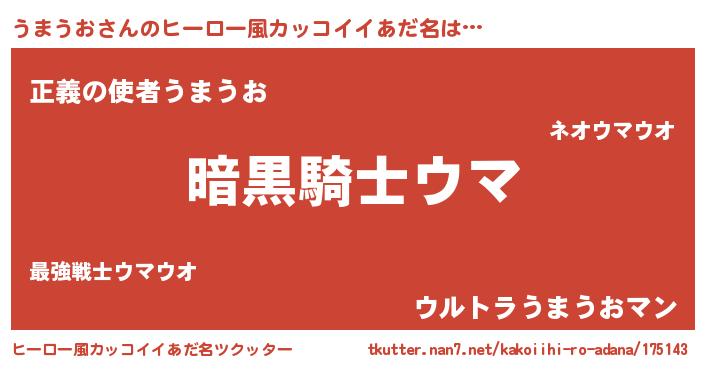 | 女子向けラノベタイトル風あだ名 | 『うまうおは平凡を望む』 |