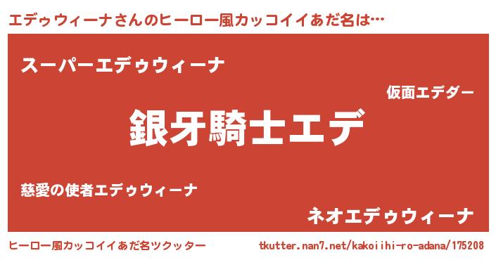 | 男性向けラノベタイトル風あだ名 | 『ダンジョンにエデゥウィーナを求めるのは間違っているだろうか』 |