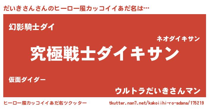 | 女子向けラノベタイトル風あだ名 | 『だいきさんストレイドッグス』 |