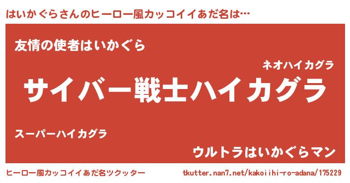 | 意味不明あだ名 | 『自称はいかぐら』『永久保存はいかぐら』 |
