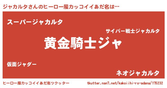 | 男性向けラノベタイトル風あだ名 | 『ダンジョンにジャカルタを求めるのは間違っているだろうか』 |