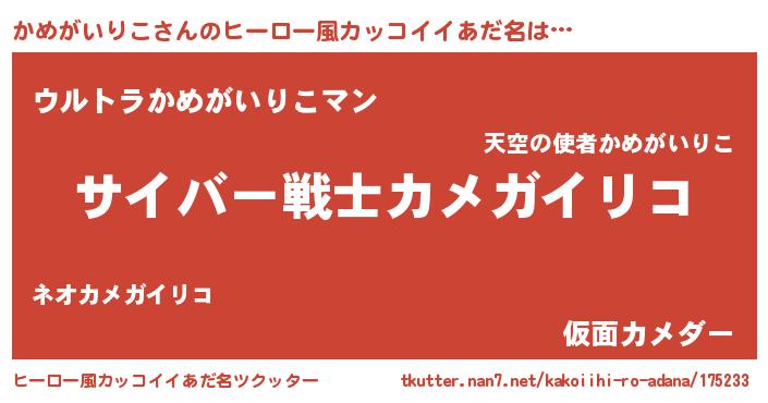 かめがいりこさんのヒーロー風カッコイイあだ名をツクッター!