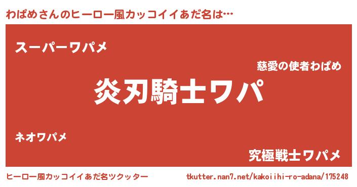 わぱめさんのヒーロー風カッコイイあだ名をツクッター!