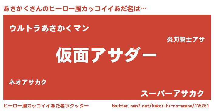 | 意味不明あだ名 | 『住所不定無職あさかく(56歳)』 |