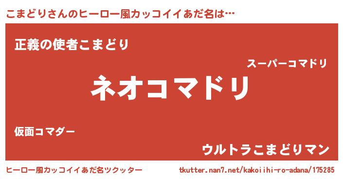 | 胡散臭い通販商品みたいなあだ名 | 『絶対に幸福をもたらす健康食品…その名も「こまどり」』 |