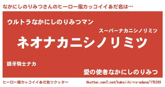 | 男性向けラノベタイトル風あだ名 | 『なかにしのりみつという概念が存在しない退屈な世界 』 |