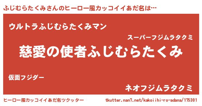 | 男性向けラノベタイトル風あだ名 | 『ノーゲーム・ノーフジムラタクミ』 |