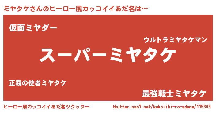 | 男性向けラノベタイトル風あだ名 | 『ミヤタケの憂鬱』 |