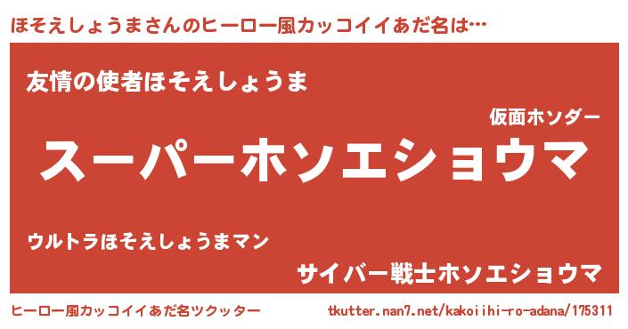 | 胡散臭い通販商品みたいなあだ名 | 『モテモテ間違いなしブレスレット…その名も「ほそえしょうま」』 |