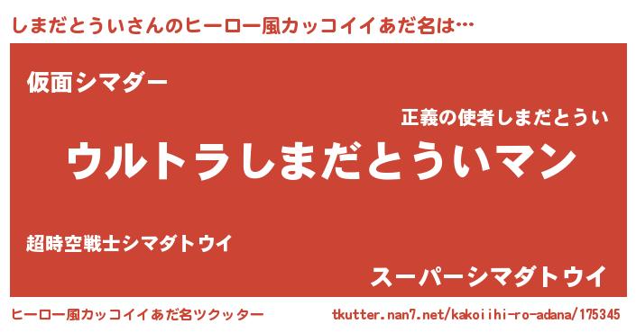 | 男性向けラノベタイトル風あだ名 | 『シマダトウイスレイヤー』 |