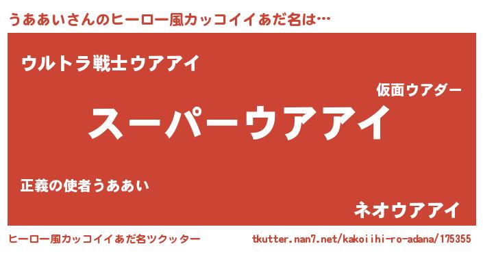 | 男性向けラノベタイトル風あだ名 | 『うああいの憂鬱』『魔弾の王とうああい』 |