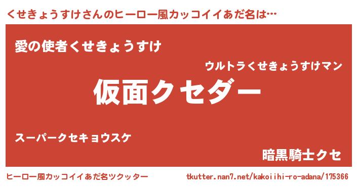 | 男性向けラノベタイトル風あだ名 | 『この素晴らしい世界にくせきょうすけを!』 |