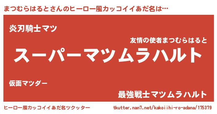 | ポケモン風あだ名 | 『マツチュウ』『ヒマツムラハルト』 |