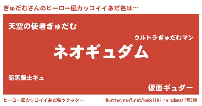 | 伝説のあだ名 | 『聞きしに勝る勇者ぎゅだむ』 |
