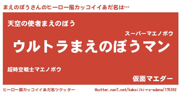 | ファンタジー風あだ名 | 『エターナルマエノボウー』 |