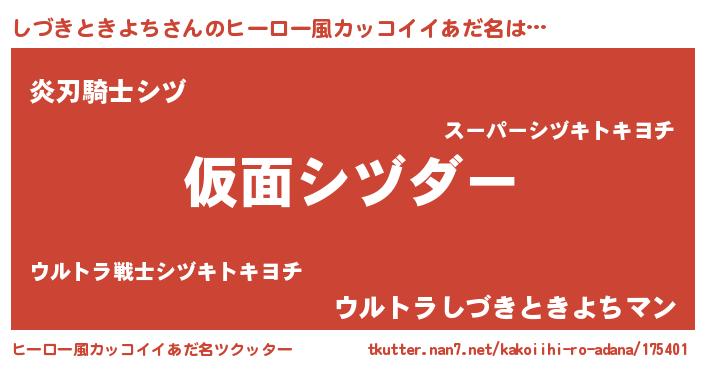 | 意味不明あだ名 | 『住所不定無職しづきときよち(39歳)』 |