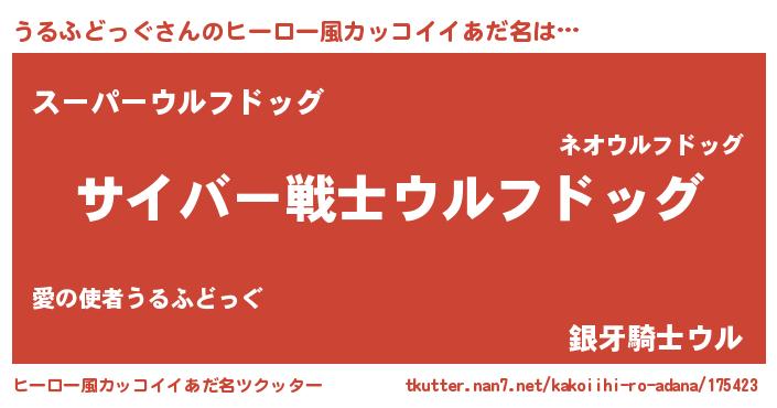 | 男性向けラノベタイトル風あだ名 | 『Re:うるふどっぐから始める異世界生活』 |