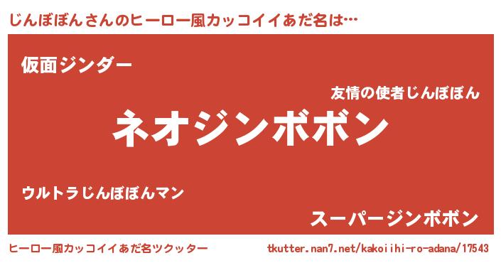 | 男性向けラノベタイトル風あだ名 | 『じんぼぼんという概念が存在しない退屈な世界 』 |