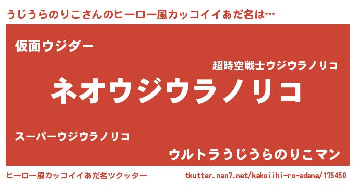| 男性向けラノベタイトル風あだ名 | 『誰もが恐れるあのうじうらのりこが、ぼくの専属メイドになるようです。』 |