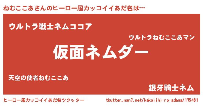 | 胡散臭い通販商品みたいなあだ名 | 『あなたにだけ特別に提供する世界で10本だけ現存している希少なブランデー…その名も「ねむここあ」』 |
