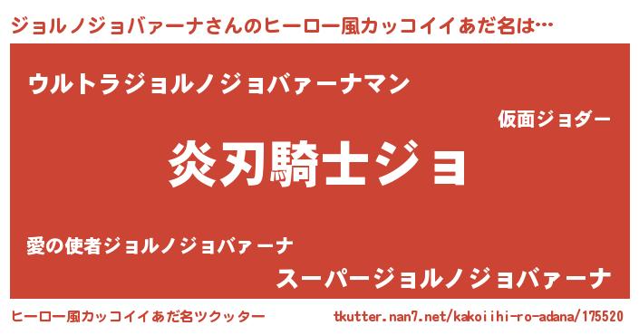 | ポケモン風あだ名 | 『ヒジョルノジョバァーナ』『ジョゴンZ』 |